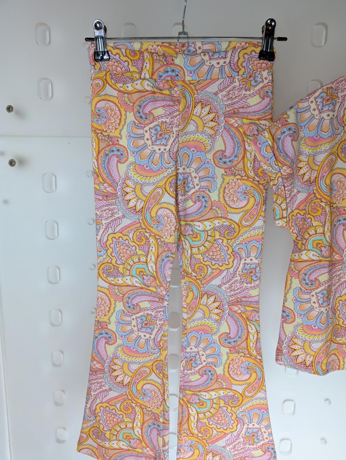 Features a short-sleeve top with matching flared leggings — very 70s, very playful, very Oilily.