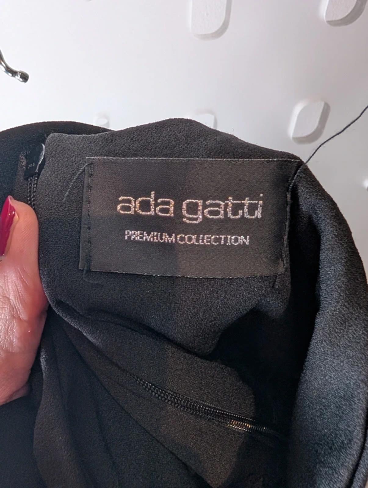 Elegant halter neck dress by Ada Gatti, made in Italy. Structured black bodice with full lining and centre back zip, flowing into a sheer mesh skirt beautifully embroidered with rose detailing for soft romantic contrast.