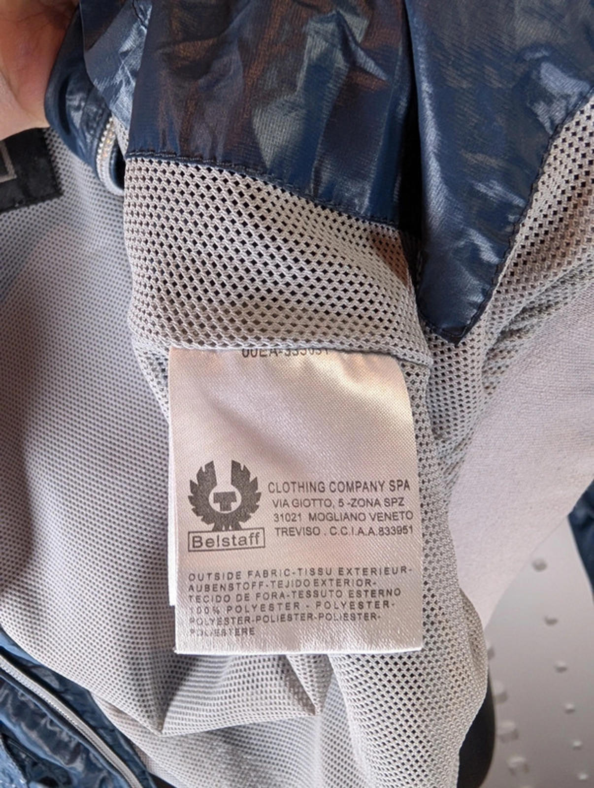 Belstaff lightweight bomber jacket in slate blue with grey trim.