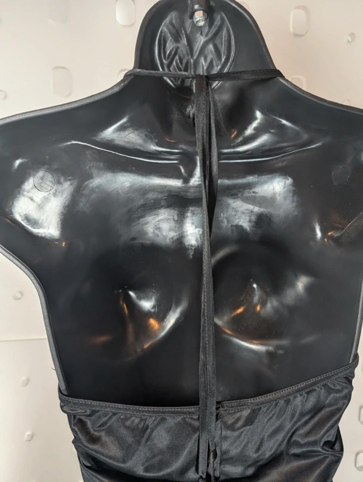 Black Draped Halter Dress M/L – 90s Style Hanky Hem