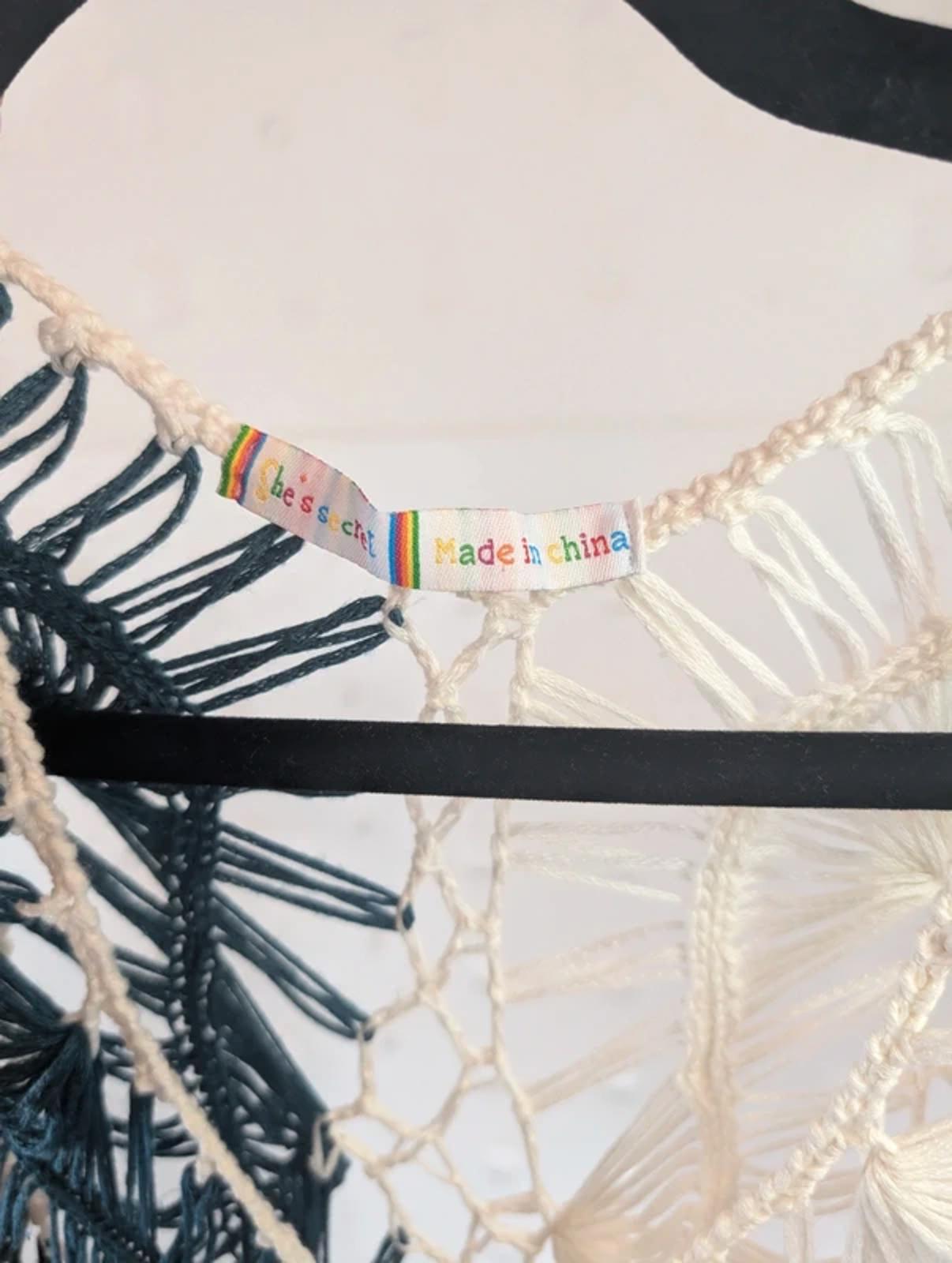 Beautiful handmade-style crochet top by She’s Secret featuring textured knit detailing and a relaxed bohemian silhouette. Perfect layered over a bralette, cami or dress for festival or summer styling.