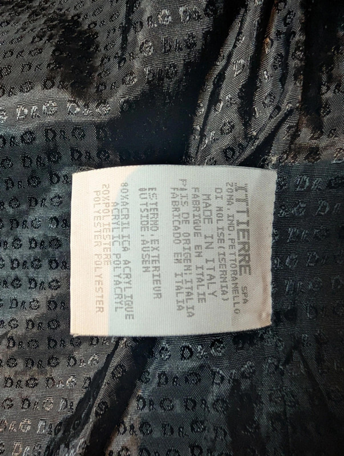 Chic, boxy and beautifully structured. This authentic Dolce & Gabbana vintage jacket is made in Italy with a plush black textured outer and a full D&G monogram satin lining. A versatile cropped cut that works with high-waist trousers, denim or evening looks.