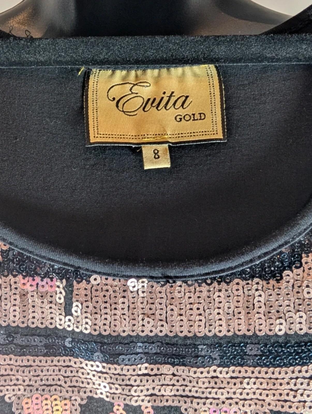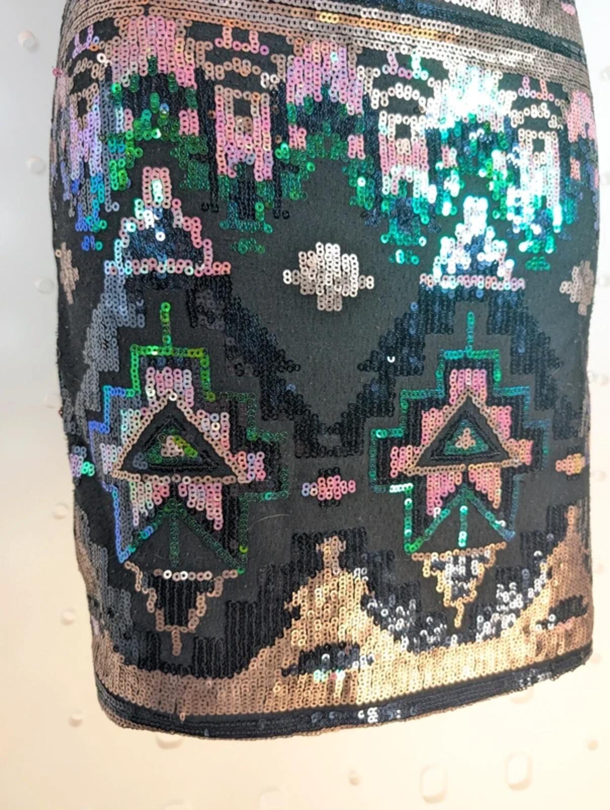 Evita Gold Sequin Bodycon Dress UK8 Pink Green Abstract Detail Party