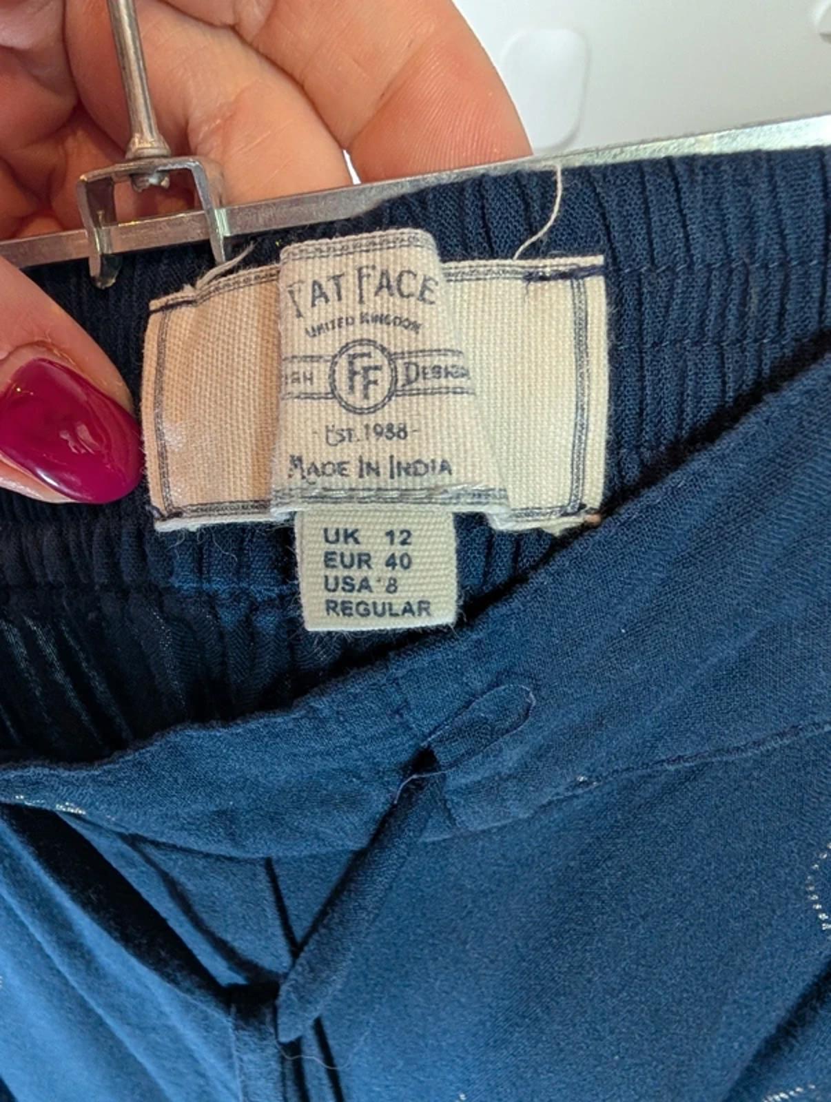 Fat Face UK12 Navy Printed Viscose Trousers