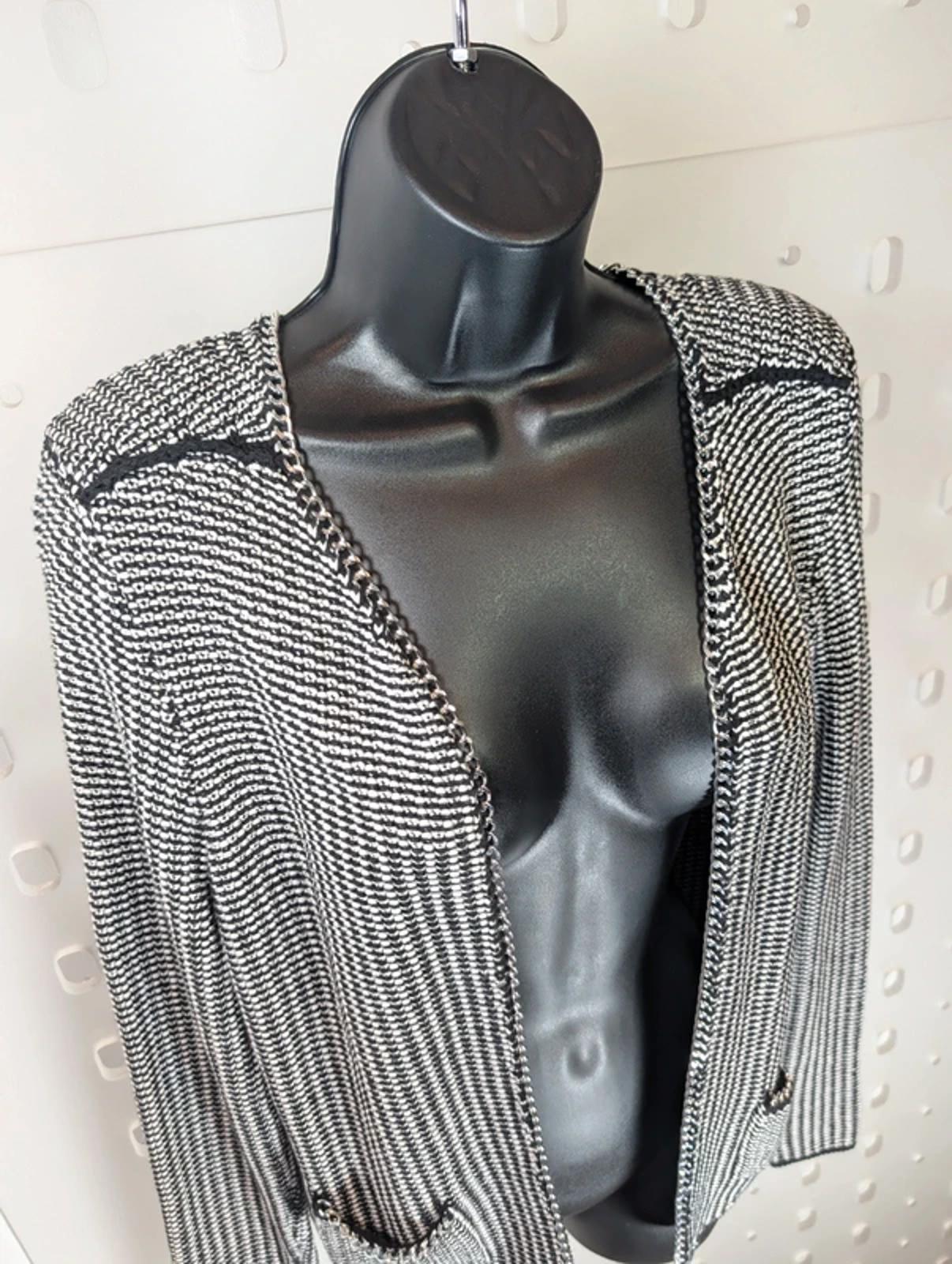 Classic black cardigan from H&M with subtle chain trim detail along the neckline for a slightly elevated finish. Made from 100% cotton with a soft knit texture, perfect for everyday layering.