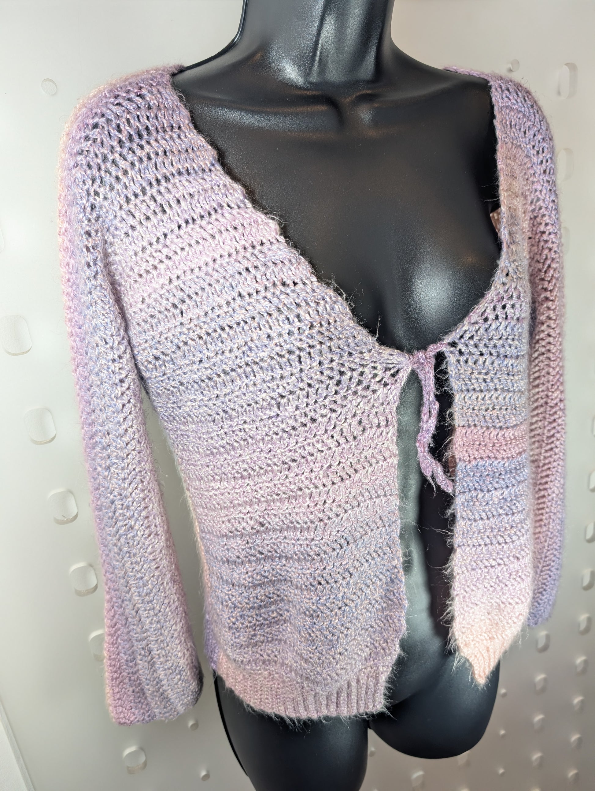Hand Knitted Pastel Wool Cardigan – Tie Front – Size S