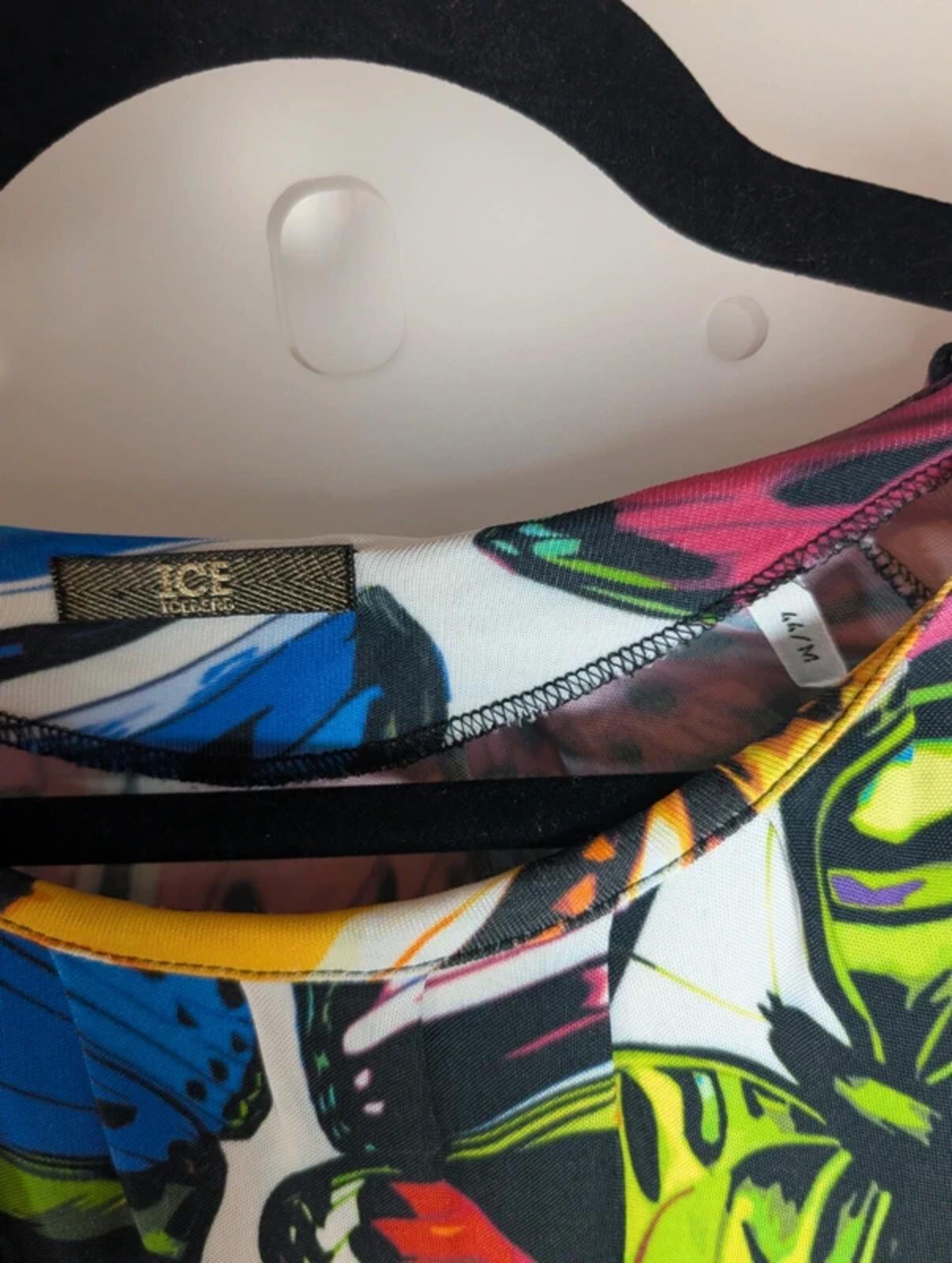 Iceberg Ice Vintage Bodycon Midi Dress Italy Butterfly Print Zip Shoulder UK10 M