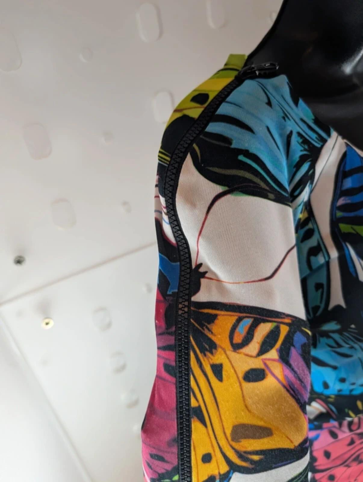 Vintage Iceberg Ice midi dress, made in Italy, in a bold butterfly print stretch jersey. Fitted bodycon silhouette with a versatile design – features zip details at the shoulders and built-in spaghetti strap layer so it can be worn two ways (off-shoulder or with straps).