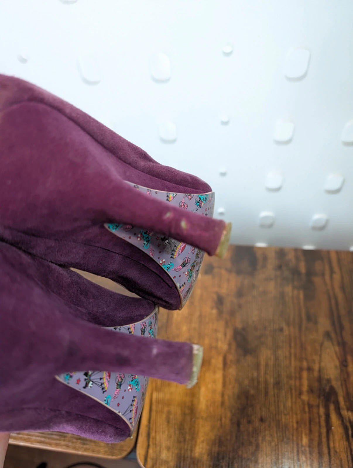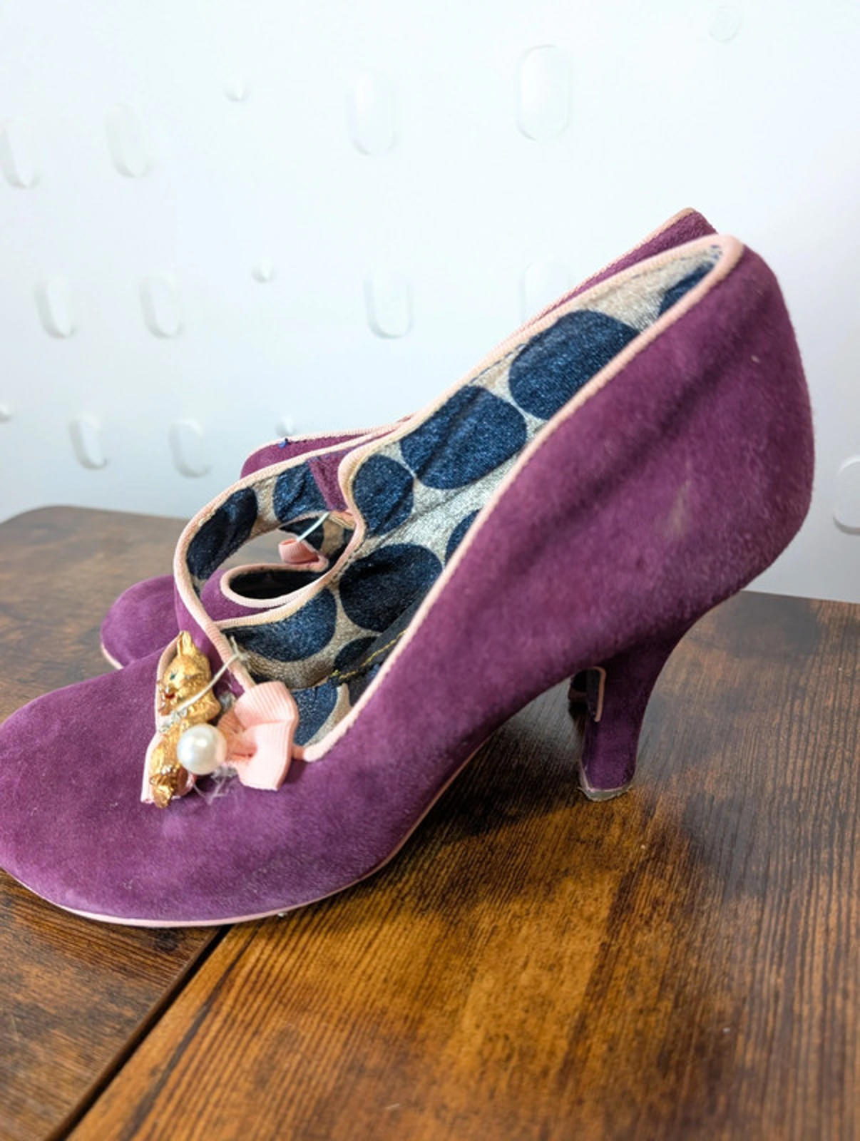 Irregular Choice purple suede heels | UK 6 | Bow & cat detail | Project pair