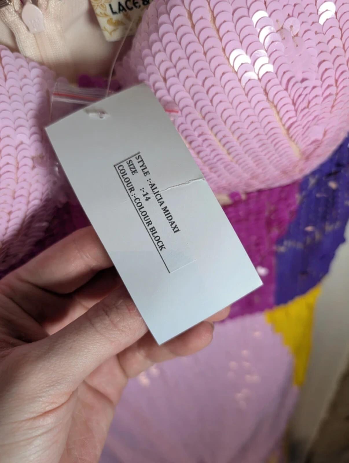 Lace & Beads Alicia Sequin Colour Block Midaxi Dress UK14 Party Occasion