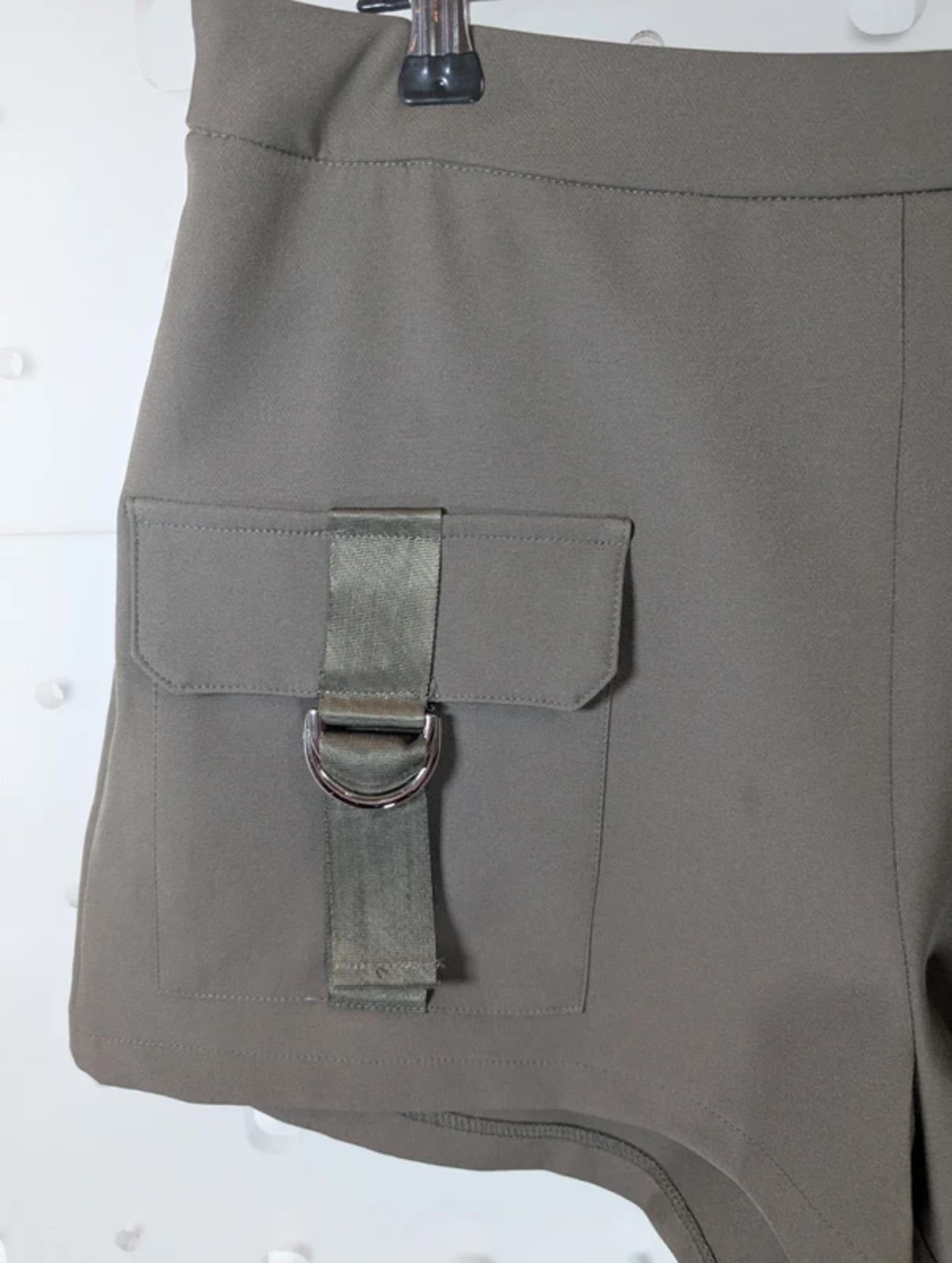 Khaki utility style shorts from Lavish Alice featuring cargo pockets with D-ring hardware and structured tailoring. High rise fit with clean waistband and flattering length. Easy summer styling piece with boots or trainers.