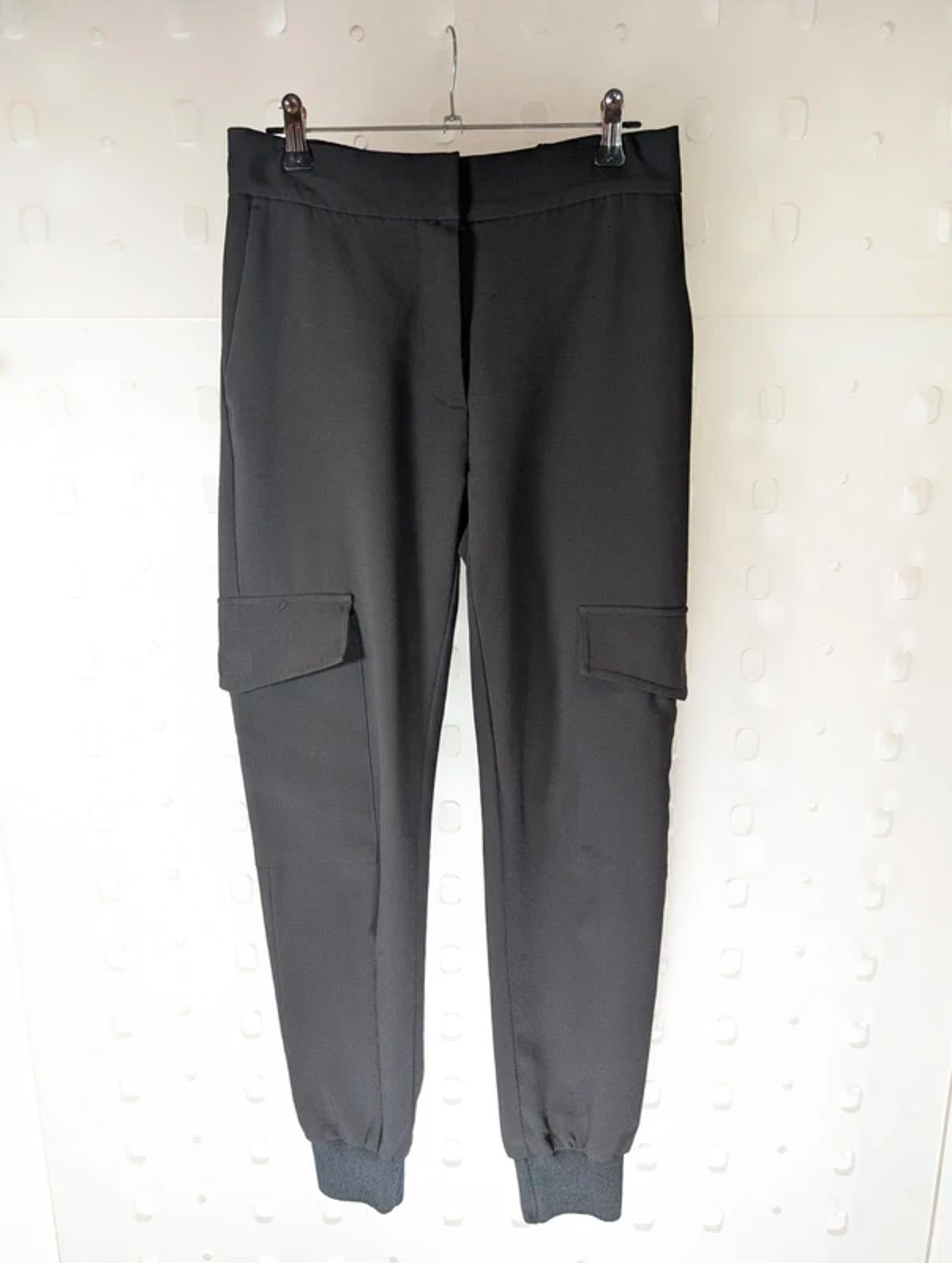 Levete Room black cargo joggers XS with tapered leg, ribbed cuffs and utility pockets. Scandinavian brand known for clean contemporary design. Fly front fastening with elasticated back waist for comfort and a flat front for a flattering fit. Soft fabric with light bobbling from wear but still a great everyday piece. Easy to style with trainers or knitwear for relaxed minimal style.