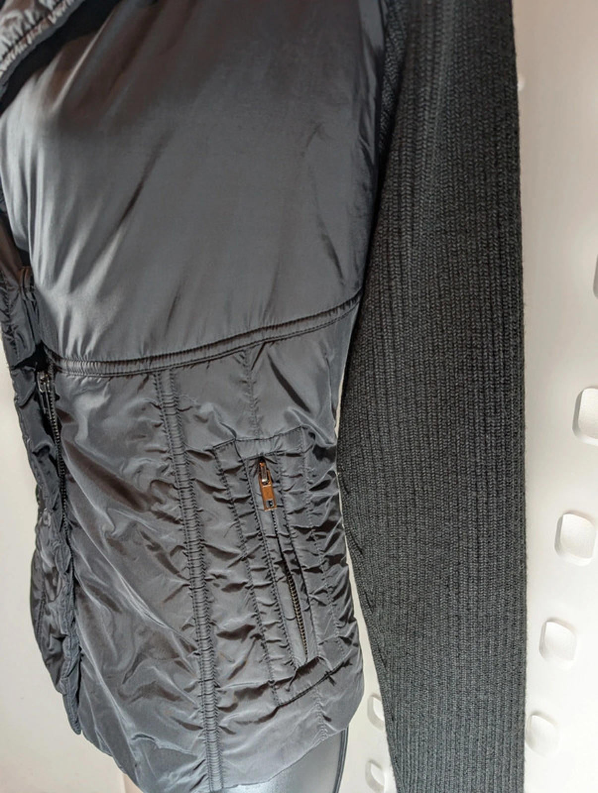 🖤 Details: Quilted body, ribbed knit sleeves & collar, metal zip fastening, fitted back panel