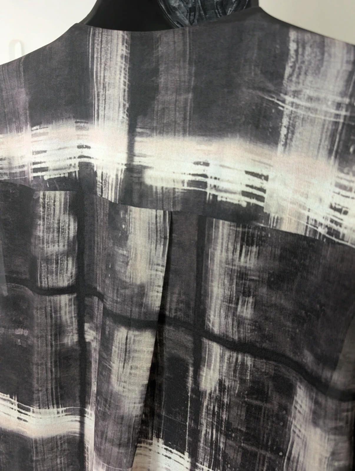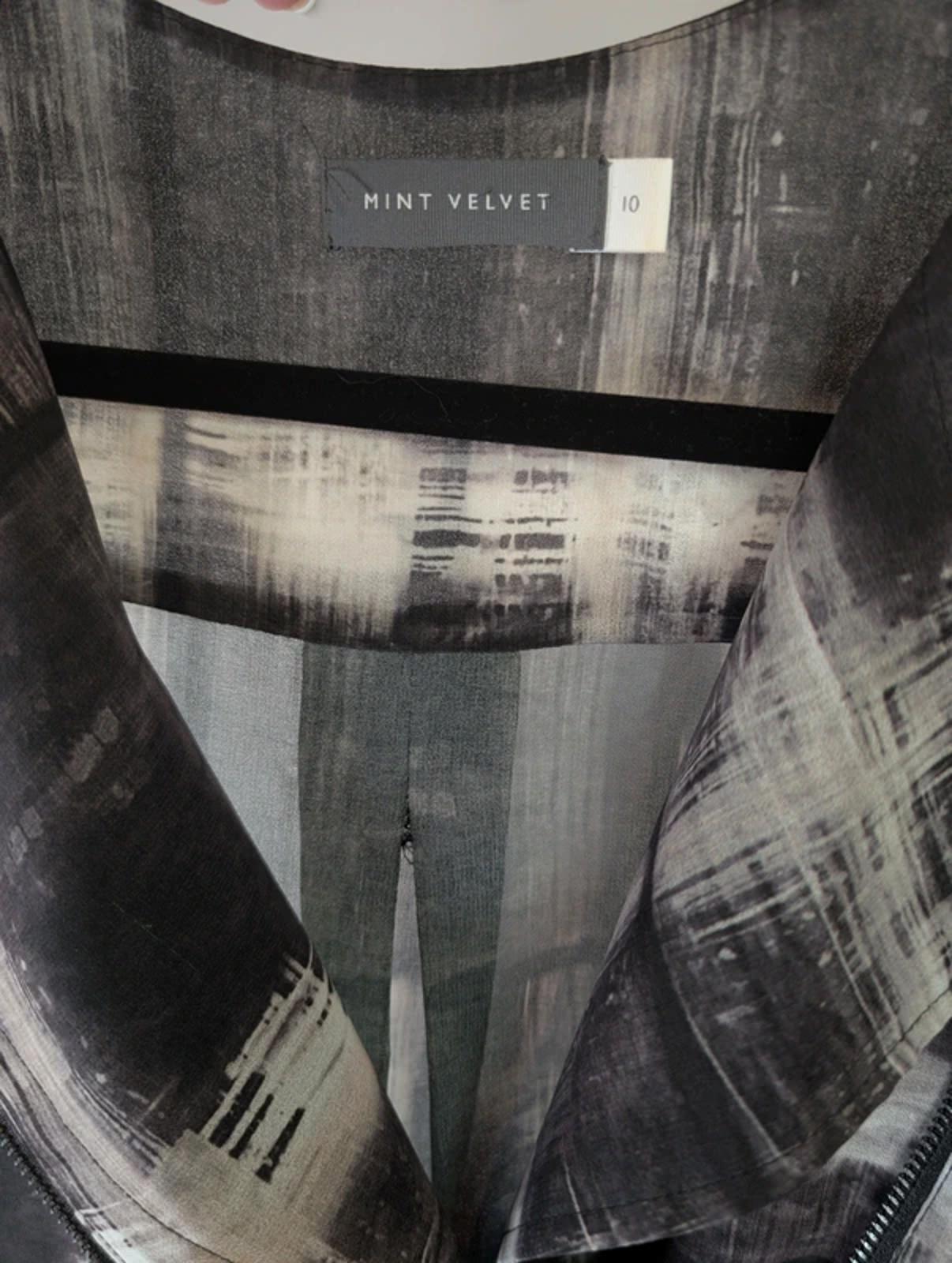 Relaxed biker inspired shirt by Mint Velvet with zip front detail and abstract tonal print. Lightweight fabric with an easy drape and slightly longer length making it great layered over denim or leggings.