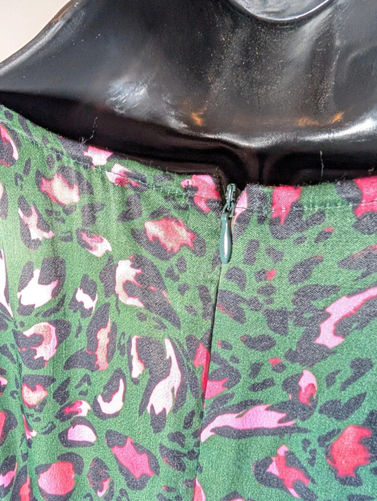 Originally over £200, this standout Sirens London piece delivers full impact: deep green base with bold hot-pink abstract leopard print, soft satin feel and a flattering blouson-top silhouette.