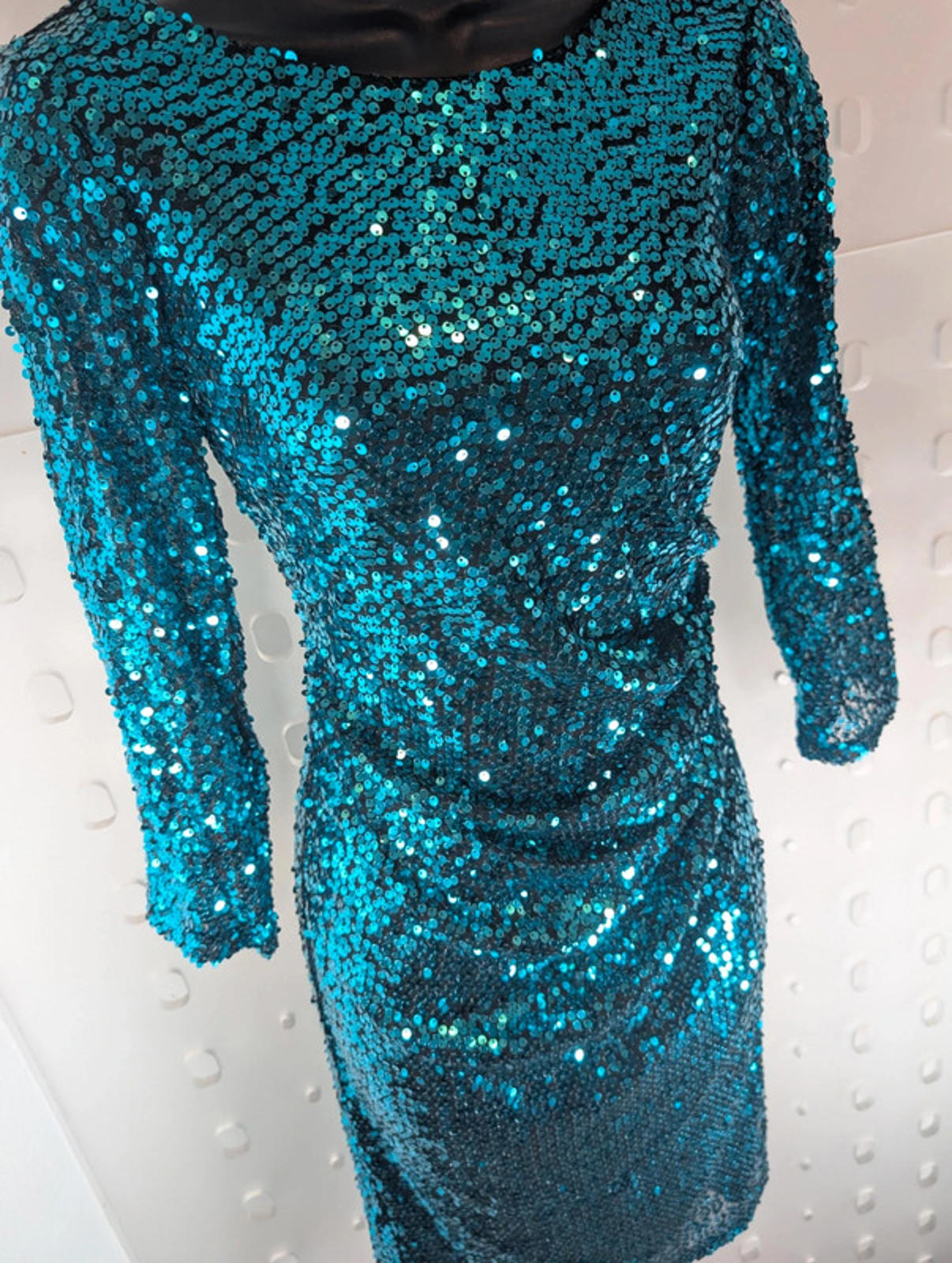 An absolutely beautiful fully-sequinned dress in a rich turquoise/teal shade. The perfect party, NYE or birthday dress ✨