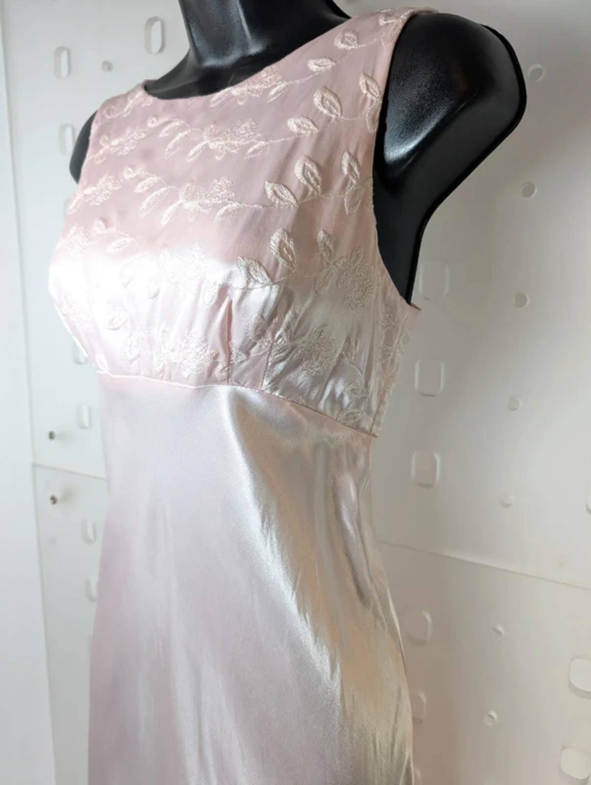 Vintage 90s Bias Cut Rayon Zum Zum Maxi Dress Empire Embroidered Bodice UK 6/8