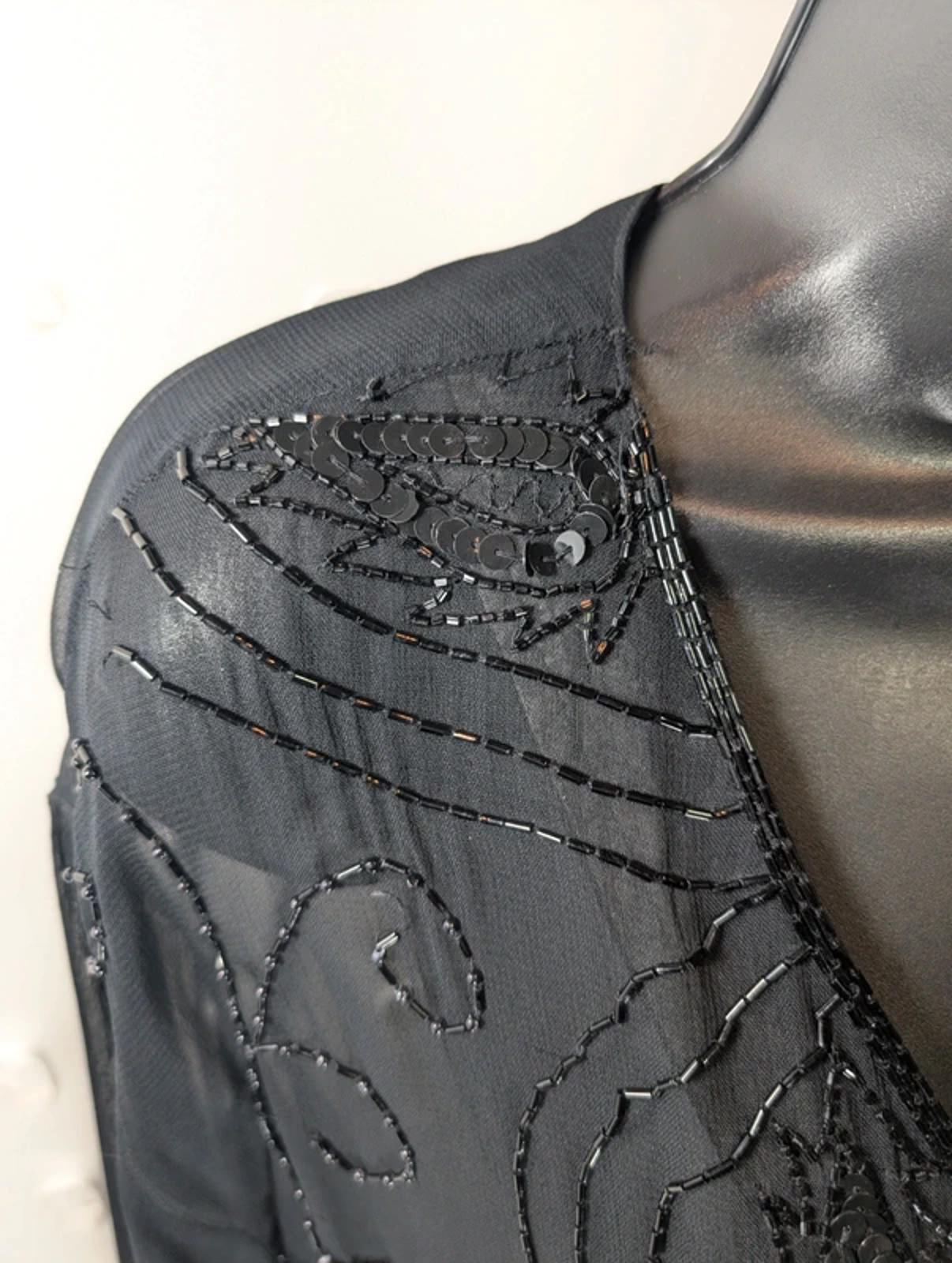 Vintage Sheer Beaded Sequin Blouse Free Size Viscose Evening Layer